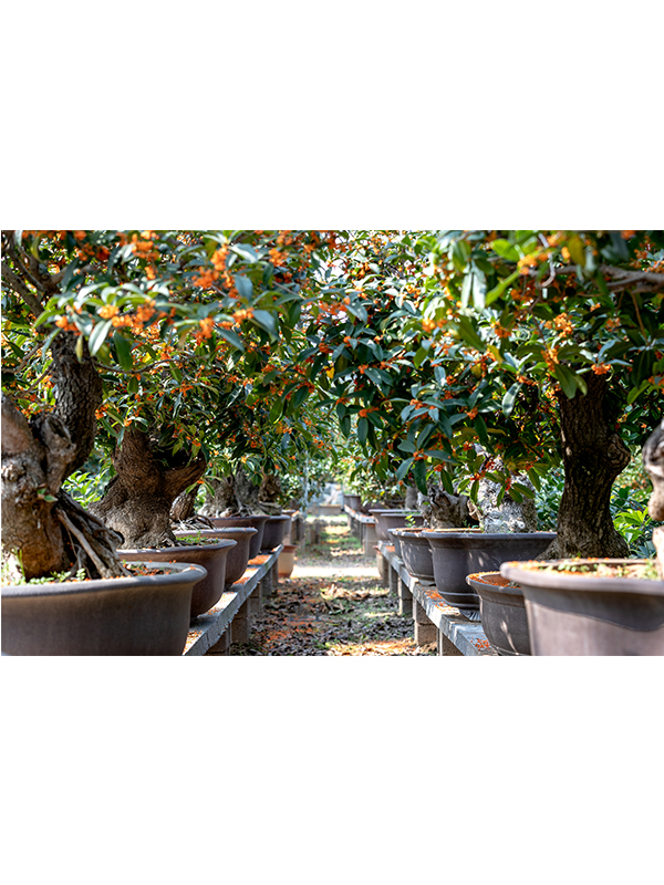 青州鑫都市花卉盆景有限公司位于中國北方花卉生產、交易集散地---山東省青州市。 現花園主要種植和銷售的桂花品種有:金桂(八月桂): 金桂、球桂、金球桂、速生金桂、狹葉金桂、金秋早;銀桂(八月桂):玉玲瓏、柳葉銀桂、長葉早銀桂、籽銀桂、白潔、晚銀桂、早銀桂、 九龍桂;丹桂(八月桂):狀元紅、朱砂桂、堰虹桂、蓮籽丹桂、硬葉丹桂;四季桂:月月桂、四季桂、佛頂珠、日香桂、天香臺閣等四大系列30余種桂花。